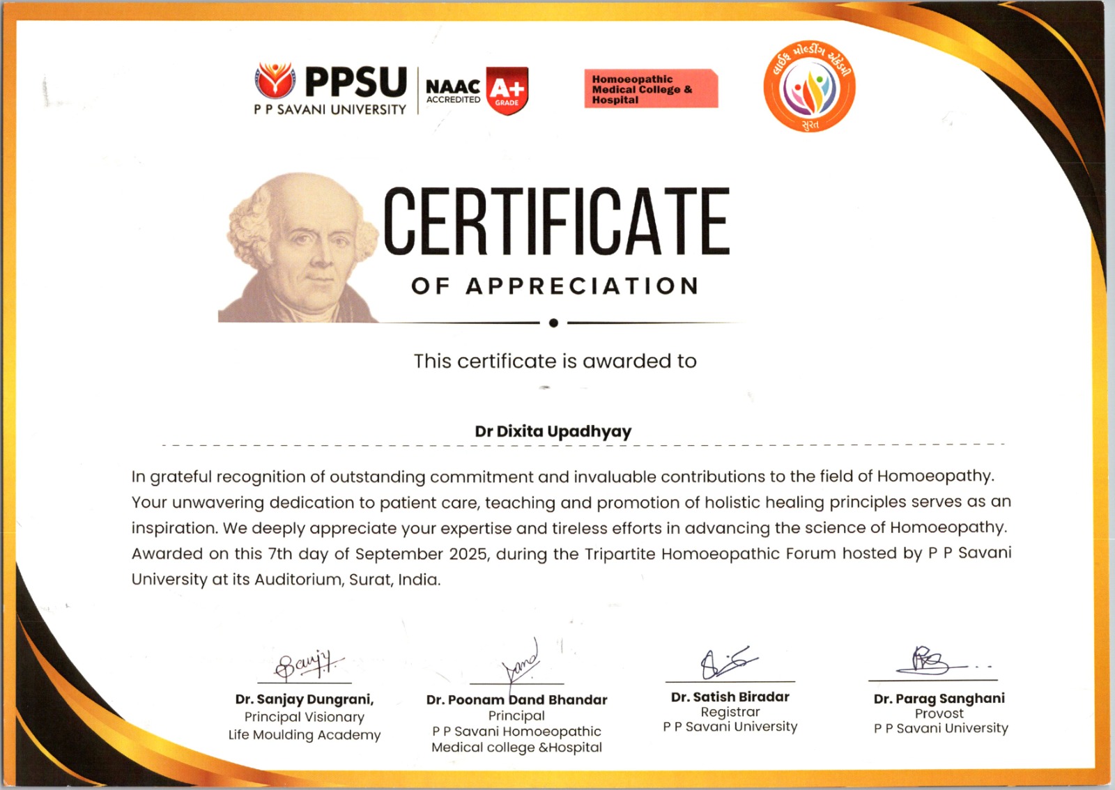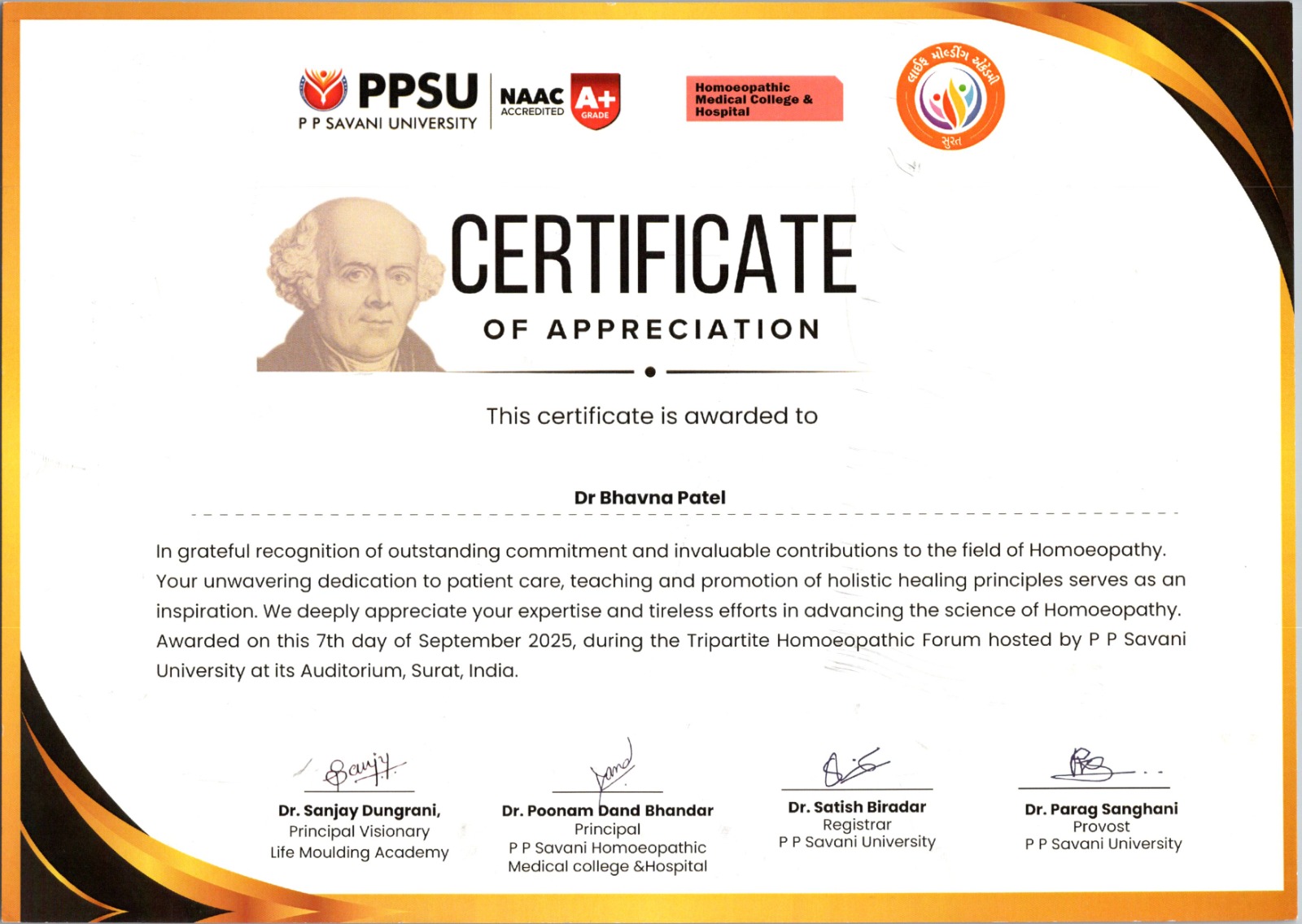 Many congratulations to Dr. Jyoti Rao Ma'm, Principal of the College, for her appointment as a subject expert on the Board of Studies for the Faculty of Homoeopathy at Vidyadeep University, Anita, Kim, Gujarat.