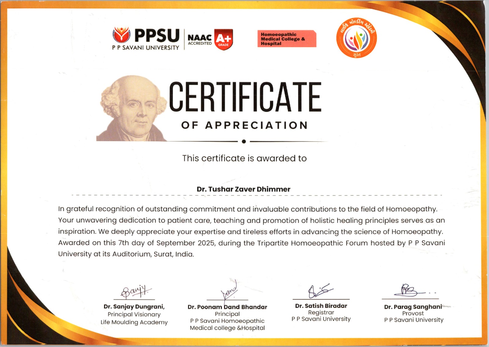 Many congratulations to Dr. Pankaj Lathiya (Professor of Dept. of Community Medicine of College) on securing his Ph.D. degree in Homoeopathy. Your dedication and perseverance have made our college proud. This achievement is a testament to your hard work and commitment to advancing the field of Homoeopathy.