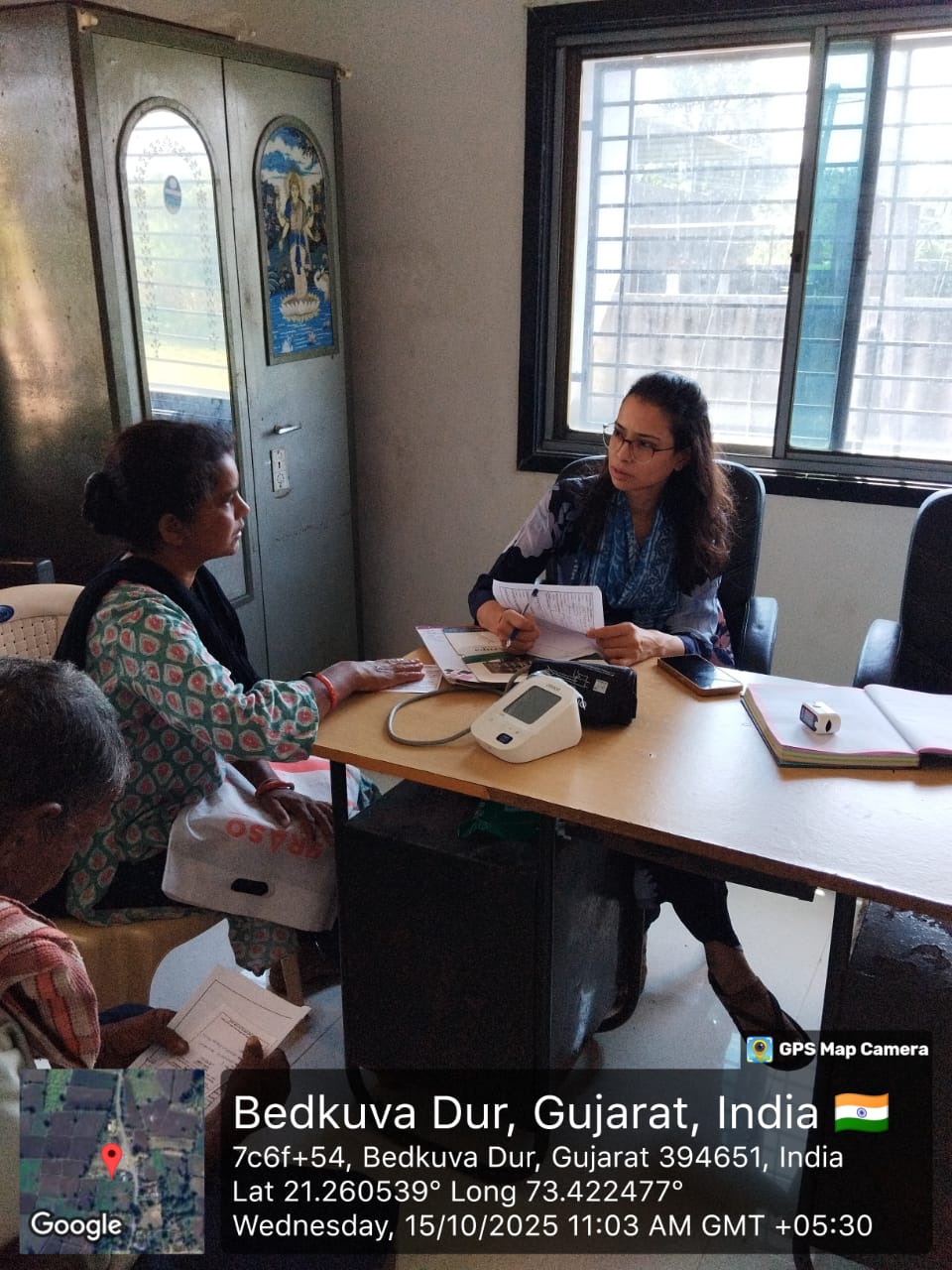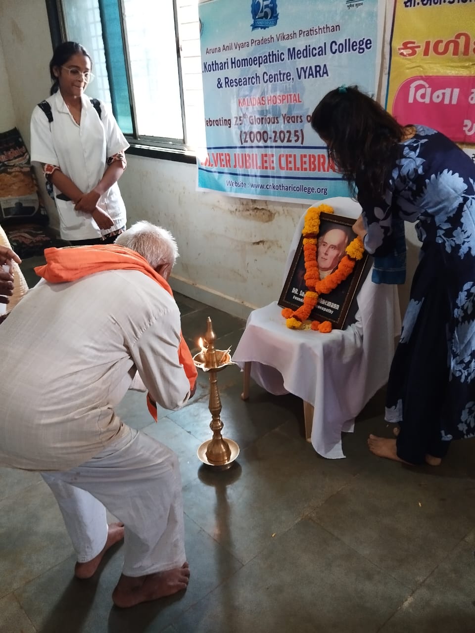 A free homeopathic medical camp was organized by Kalidas Hospital, Vyara, managed by C.N. Kothari Homeopathic Medical College and Research Center, to celebrate the institution’s 25th anniversary. The camp was held on 15th October 2025 (Wednesday) from 10:00 AM to 12:00 PM at Doodh Dairy, Navu Faliya, Ghasiyamedha. The camp was served by Dr. Smita and Dr. Nikita. The whole program was done under the guidance of college principal Dr. Jyoti Rao and Organised by Dr. Dixita Upadhyay head of the camp committee, and her team.