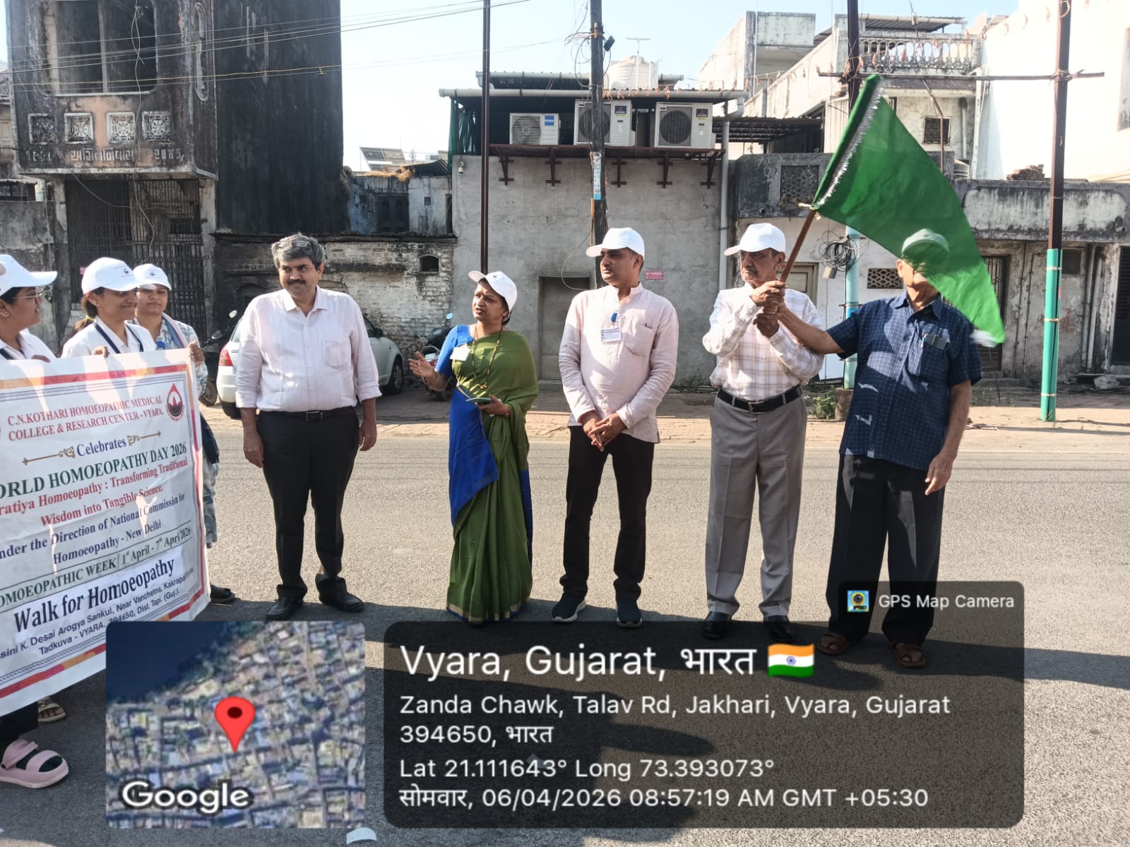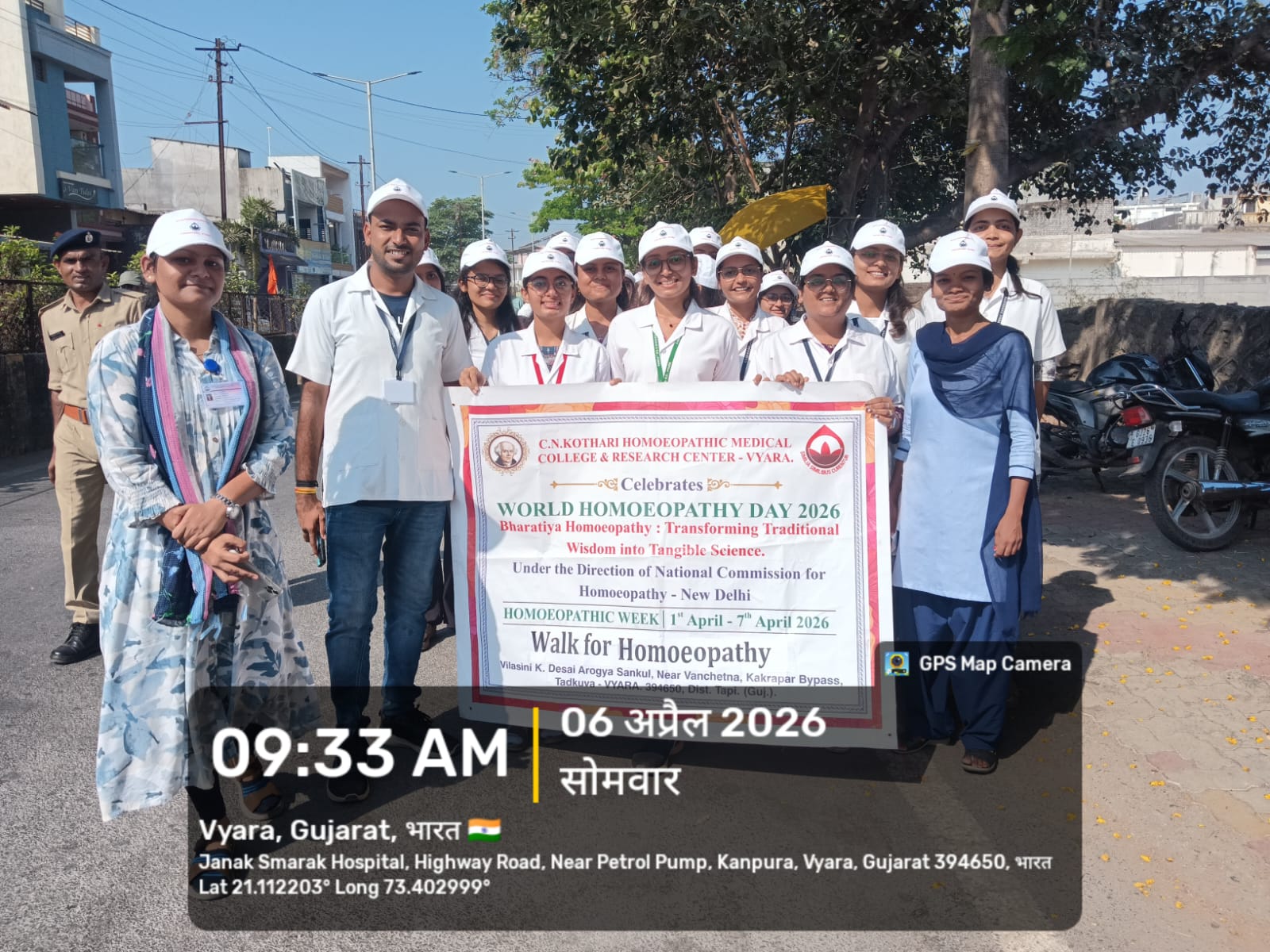 The rally was organized on 6th April, 2026, Monday. The trustees, the principal, faculty, Interns, Students, multi-tasking staff, and Peons took part in the rally. The rally started at Jhanda Chawk, Vyara at 08:30 in the morning. Respected Mr. Shirish Pradhan, Vice President of Aruna Anil Vyara Pradesh Vikash Pratishthan, along with the other Trustees, Dr. Ajay Desai Sir, Honorary Executive Director of the Institute, and Principal Dr. Jyoti Rao Madame, flagged off the rally. The rally began at Jhanda Chawk, Vyara, proceeded to Old Bus Stand, Vyara, and ended at Janak Smarak Hospital, Vyara. All participants were served buttermilk and lemon juice.