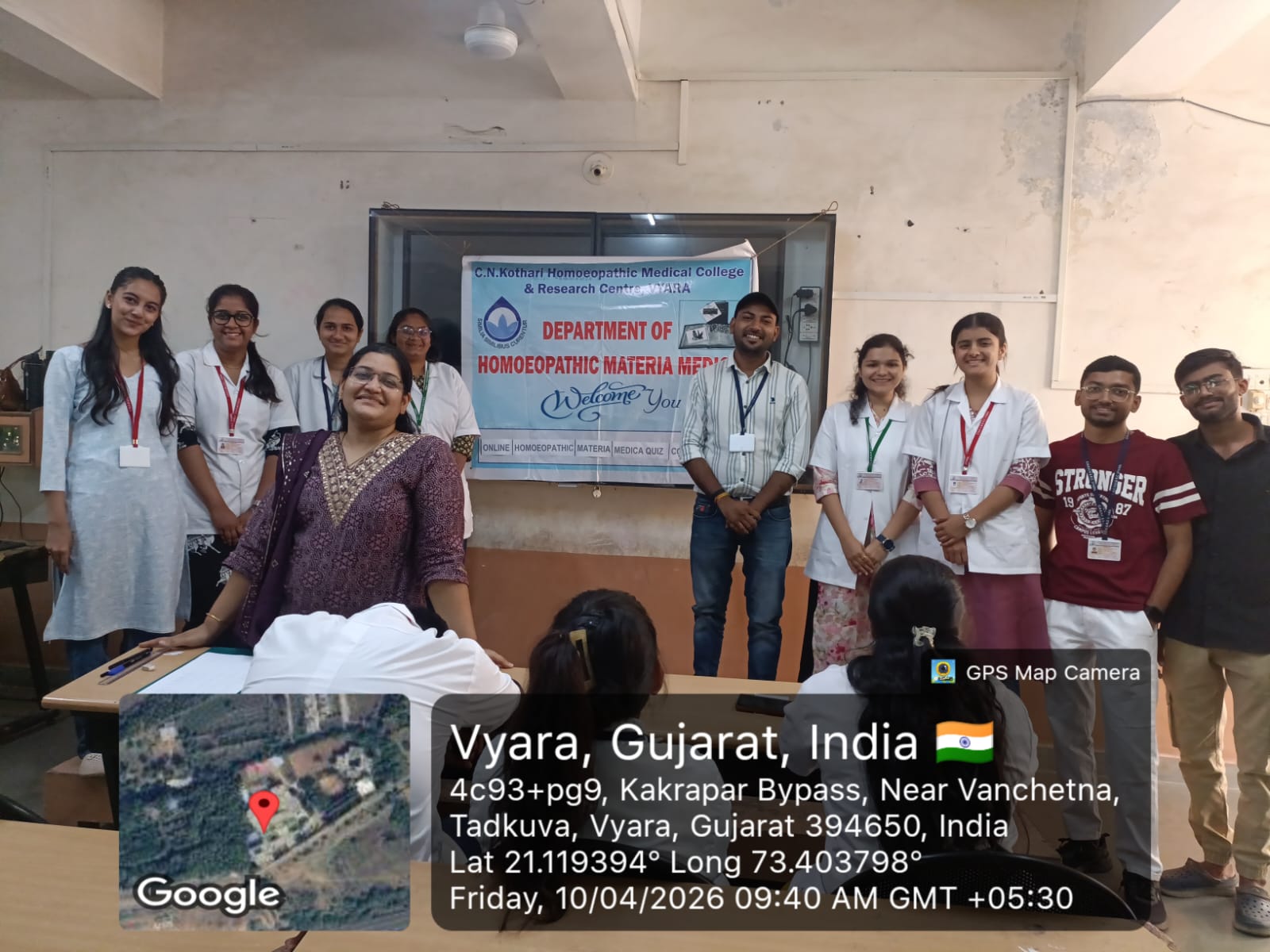 The Online Homoeopathic Materia Medica Program quiz competition 2026 was successfully conducted on 10th April 2026 with enthusiastic participation from a total of 39 students (13 groups—each group made up of 3 students) by the Homoeopathic Materia Medica department of C. N. K. H. M. C. & R. C. Vyara.